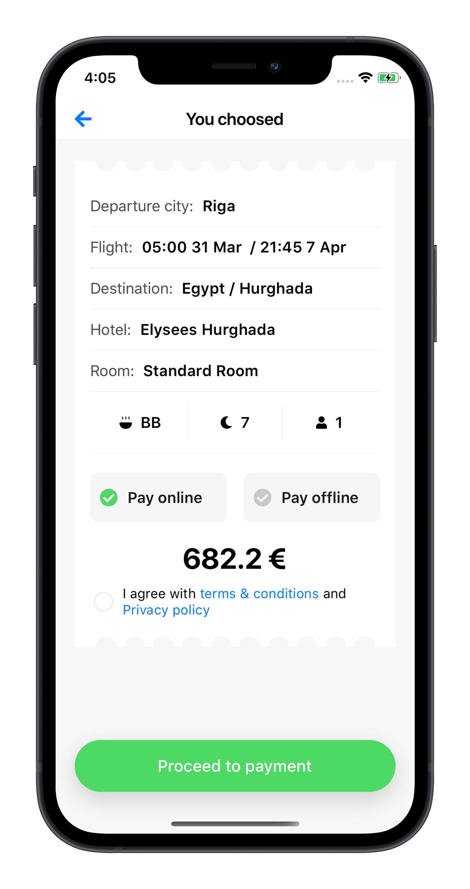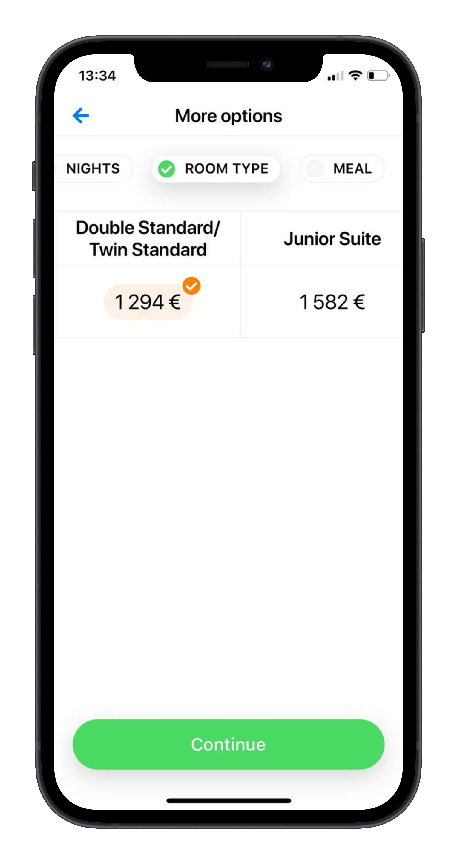 Choose the type of room and meal