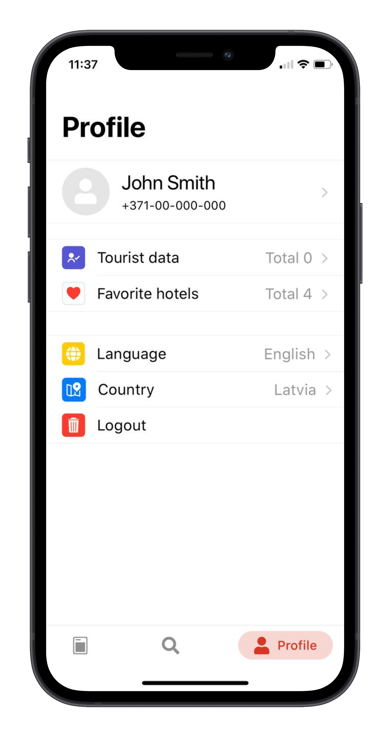 Here are notifications, your registered contact numbers and data management