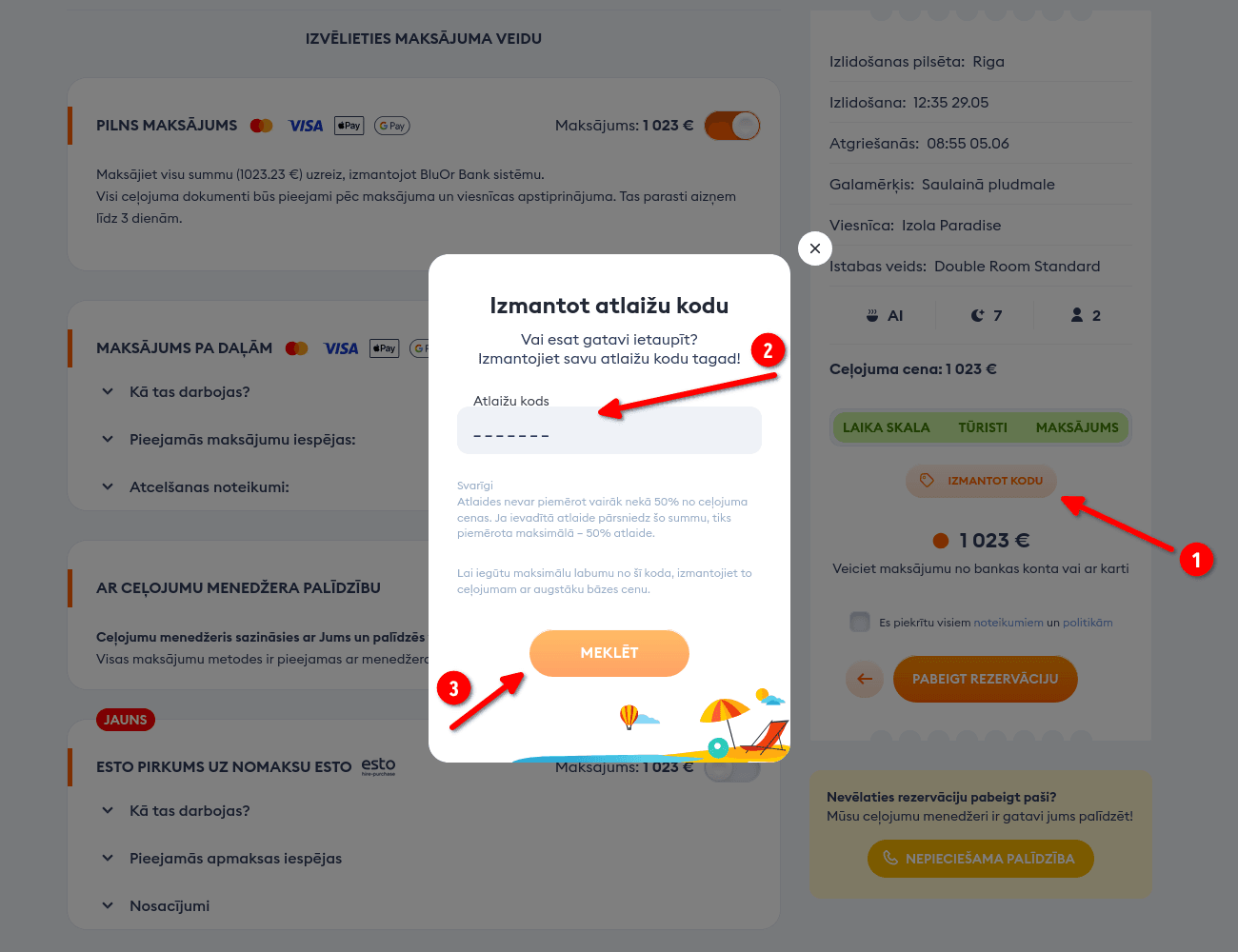 - Pabeidziet rezervāciju un dodieties uz pēdējo rezervācijas soli.